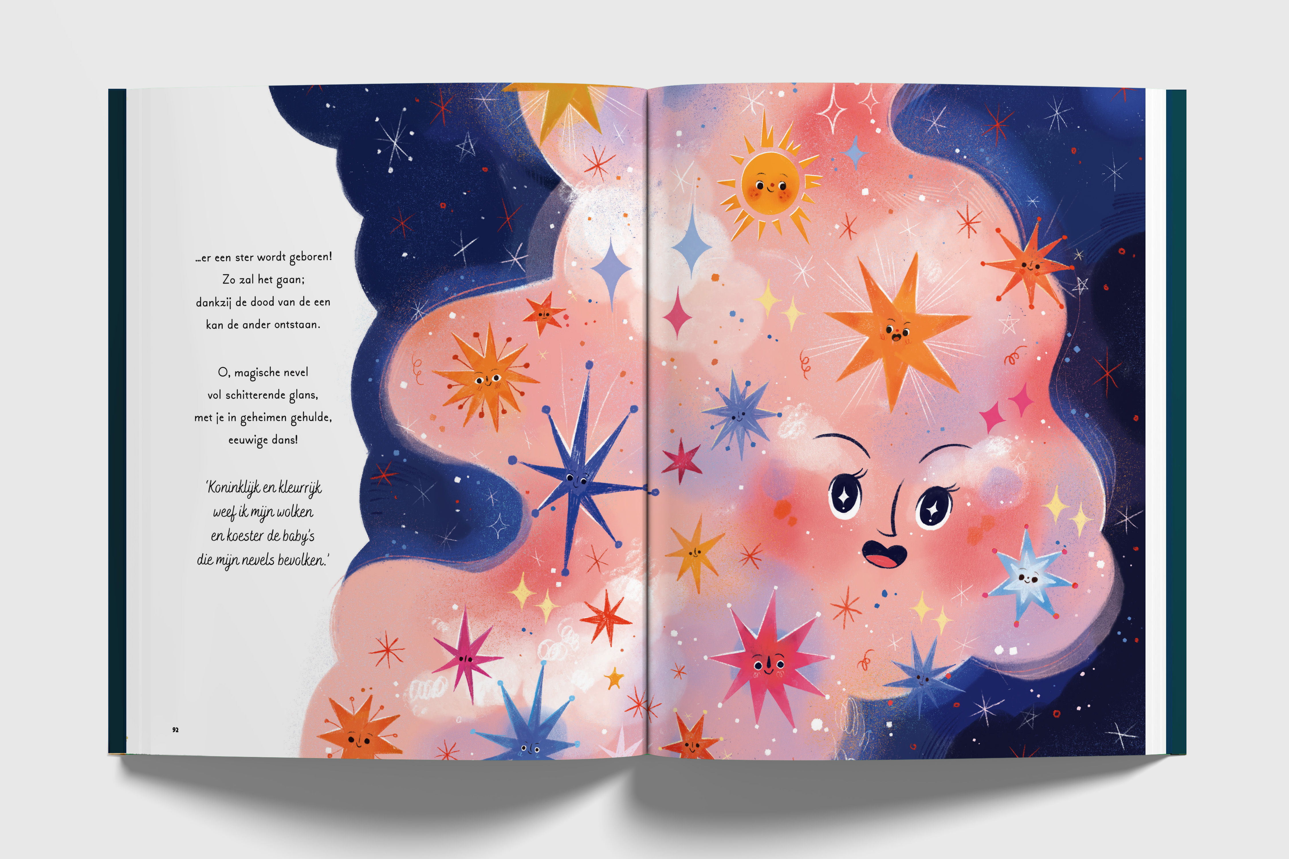 'Een speelse ontdekkingsreis voor kinderen door het wijde heelal aan de hand van negen korte verhalen. Dit boek biedt een ontdekkingsreis door het heelal, waarbij lezers meer te weten komen over sterren, planeten en andere verschijnselen in de nachthemel. Na ieder verhaaltje volgt een pagina met informatie over de sterren en planeten. In zachtaardige, leerzame stijl en op rijm geschreven. Met sfeervolle en lichtvoetige kleurenillustraties.'- Biblion