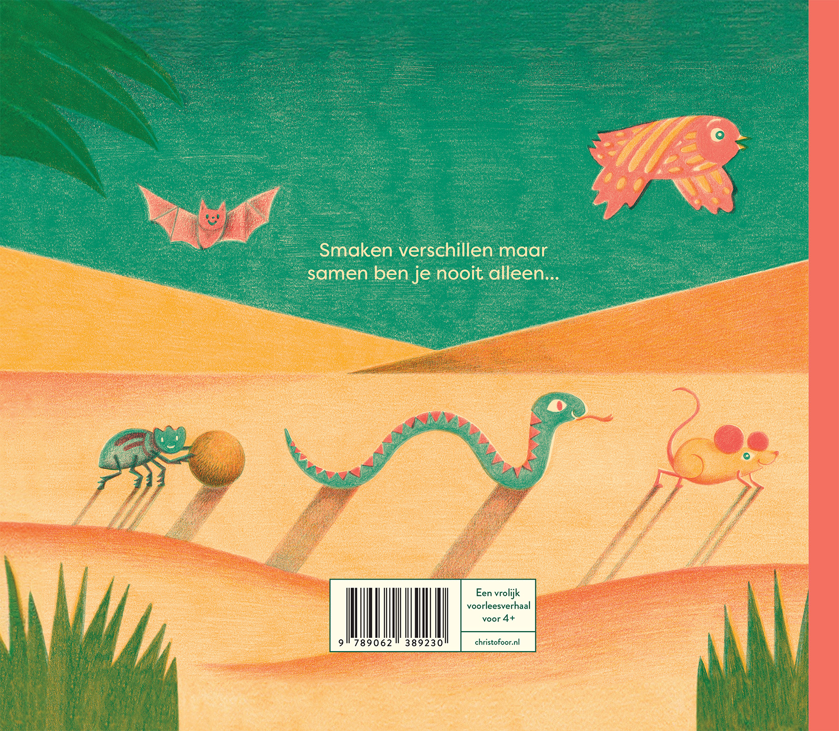 Een vrolijk voorleesverhaal over vriendschap. Op een gewone dag ontdekt een dromedaris een prachtige oase. Daar wil hij heen en natuurlijk moet zijn goede vriend mee. Al snel trekt er een bonte stoet dieren door de woestijn: op zoek naar dit wonderlijk oord. Maar hebben ze eigenlijk wel hetzelfde doel voor ogen?