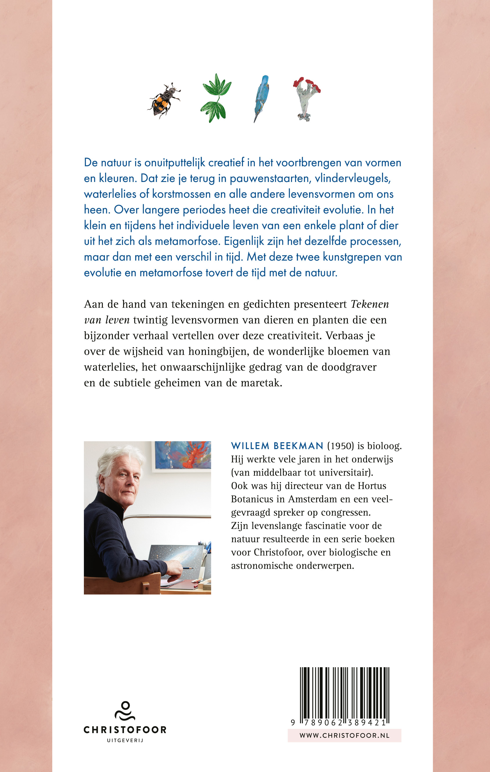 De natuur is onuitputtelijk creatief in het voortbrengen van vormen en kleuren. Dat zie je terug in pauwenstaarten, vlindervleugels, waterlelies of korstmossen en alle andere levensvormen om ons heen. Over langere periodes heet die creativiteit evolutie. In het klein en tijdens het individuele leven van een enkele plant of dier uit het zich als metamorfose. Eigenlijk zijn het dezelfde processen, maar dan met een verschil in tijd. Met deze twee kunstgrepen van evolutie en metamorfose tovert de tijd met de natuur.