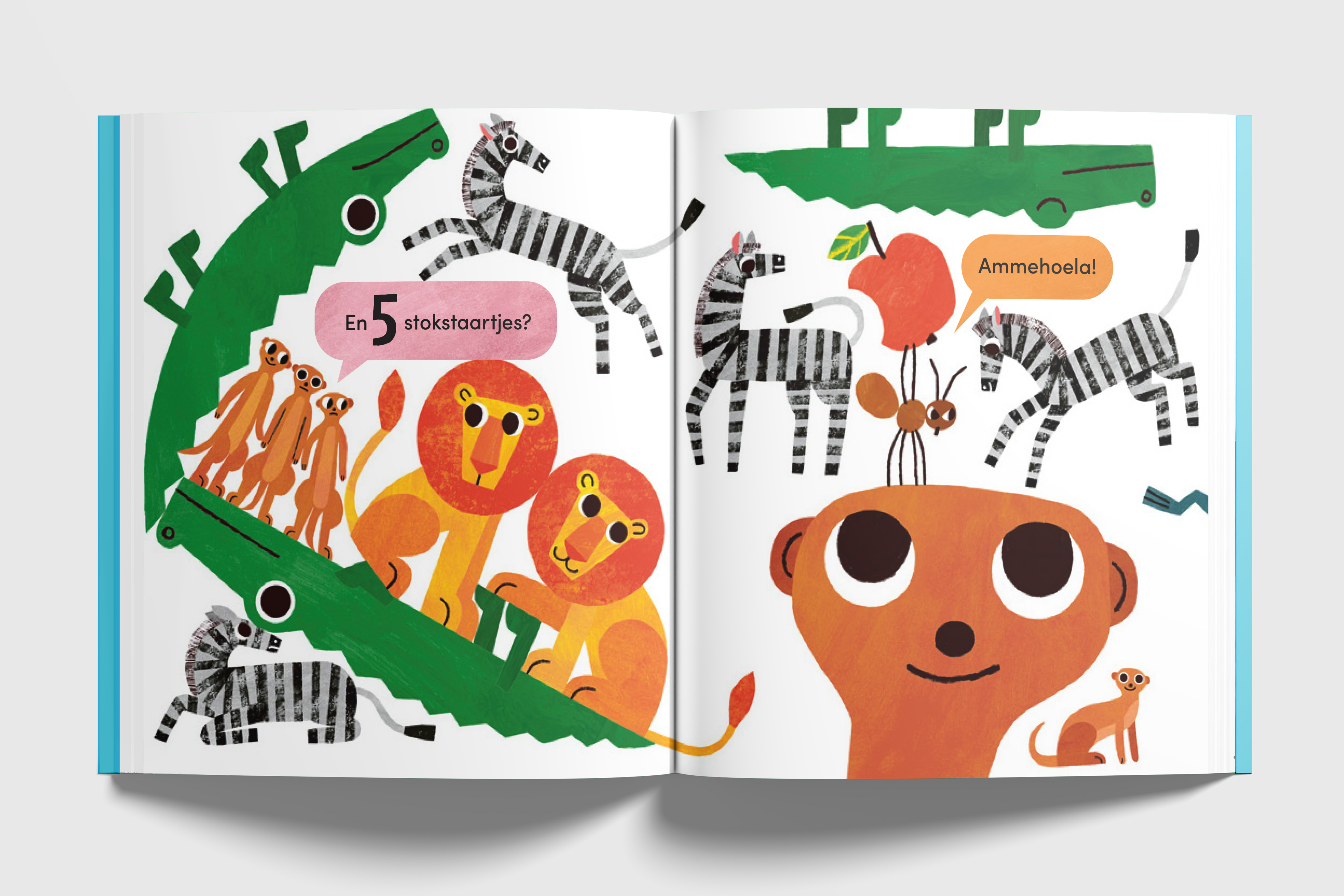 Maar dat is kletskoek! Er passen zeker nog wel twee leeuwen bij. Plus een krokodil of drie. En als dat gaat, hoe zit het dan met de vier zebra’s die er ook nog bij willen? Hoeveel dieren passen er eigenlijk in dit boek? In dit boek ontmoet je een eigenwijze mier die vindt dat er maar één dier in het boek past. Maar wat gebeurt er als andere dieren zich ook willen laten zien?